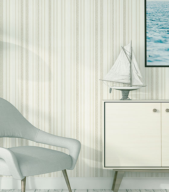 PÁG. 73 - Papel de Parede Listrado Bege Acinzentado (Detalhes com brilho) - Coleção Colorkey - Vinílico