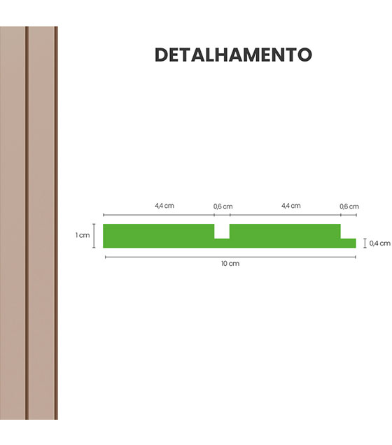 Painel Ripado Play Plus Creme 10 CM X 1 CM - Rolo com 10M - Coleção Meu Rodapé
