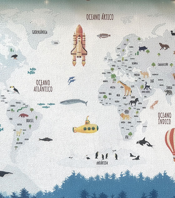 PÁG. - Painel de Parede Mapa Múndi - Tamanho Personalizado - Base Linho ou Palha