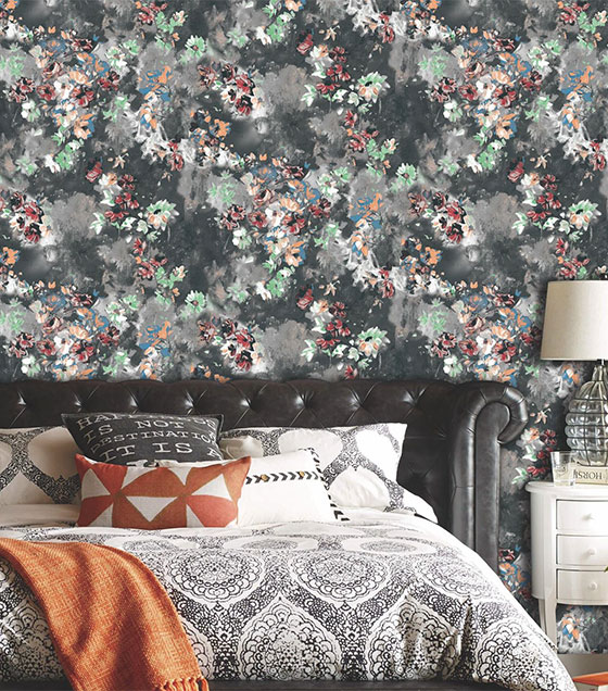 PÁG. 07 - Papel de Parede Flores Cinza Brilho - Coleção Casa - Vinílico Importado