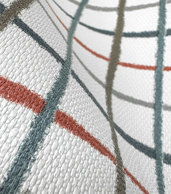 PÁG. 33 - Papel de Parede Grid Azul, Cinza e Vermelho - Coleção Revoada Bobinex - Vinílico Importado