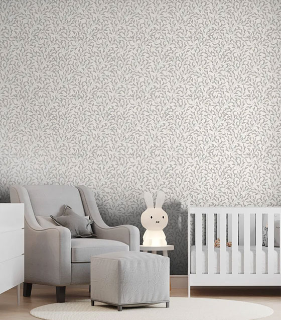 PÁG. 40 - Papel de Parede Folhagem Cinza - Coleção Revoada Bobinex - Vinílico Importado