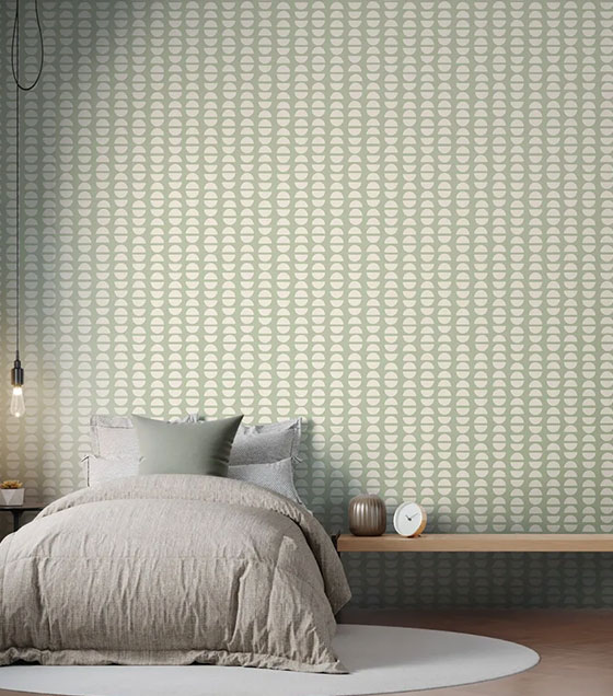 PÁG. 81 - Papel de Parede Geométrico Verde e Bege - Coleção Revoada Bobinex - Vinílico Importado