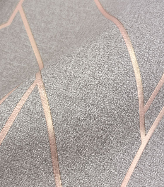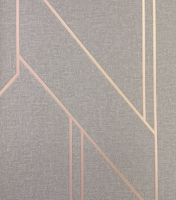 PÁG. 07 - Papel de Parede Geométrico Cinza com Brilho Rosê - Coleção Essencial Bobinex - Vinílico Importado
