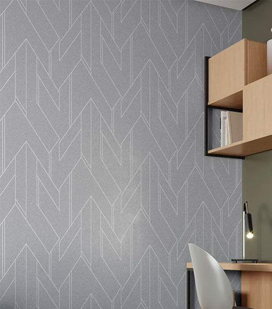 PÁG. 09 - Papel de Parede Geométrico Cinza com Brilho Prata - Coleção Essencial Bobinex - Vinílico Importado