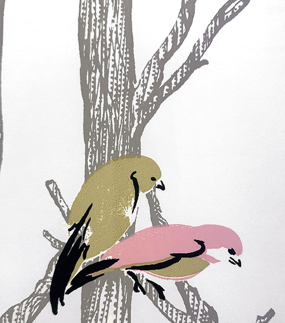 PÁG. 20 - Papel de Parede Galhos e Pássaros Cinza, Rosa e Bege - Coleção Summer - Vinílico Importado
