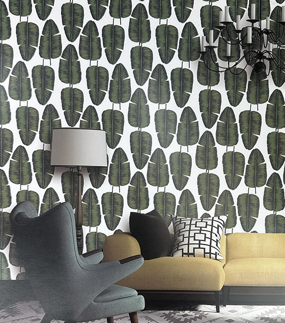 PÁG. 04 - Papel de Parede Folhagem Tropical Preto e Cáqui - Coleção Summer - Vinílico Importado