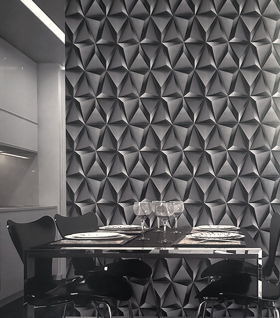PÁG. 38 - Papel de Parede Geométrico 3D Cinza Chumbo Brilho - Coleção Summer - Vinílico Importado