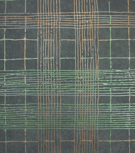 PÁG. 02 - Papel de Parede Geométrico Verde e Prata Velho Brilho - Coleção Entre Linhas - Vinílico Importado