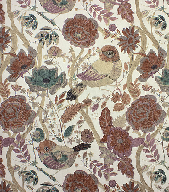PÁG. 07 - Papel de Parede Flores e Pássaros Cobre, Malva, Verde e Bege Brilho - Coleção Entre Linhas - Vinílico Importado