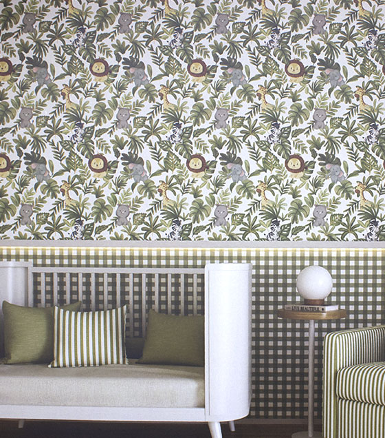 PÁG. 04 - Papel de Parede Safari Verde - Coleção Bambine - Vinílico Importado