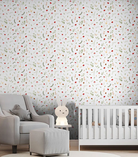 PÁG. 31 - Papel de Parede Cogumelos Vermelho e Verde - Coleção Sonhos Bobinex - Vinílico Importado