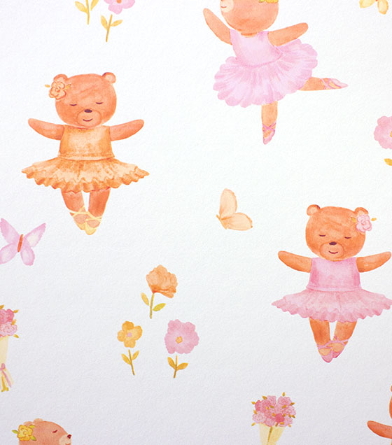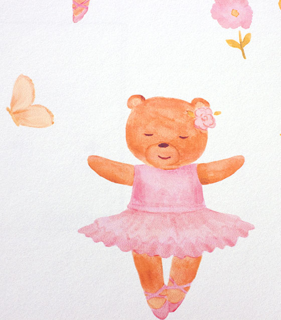 PÁG. 29 - Papel de Parede Ursinha Bailarina Rosa e Bege - Coleção Bambine - Vinílico Importado